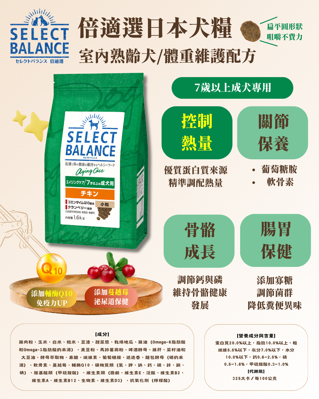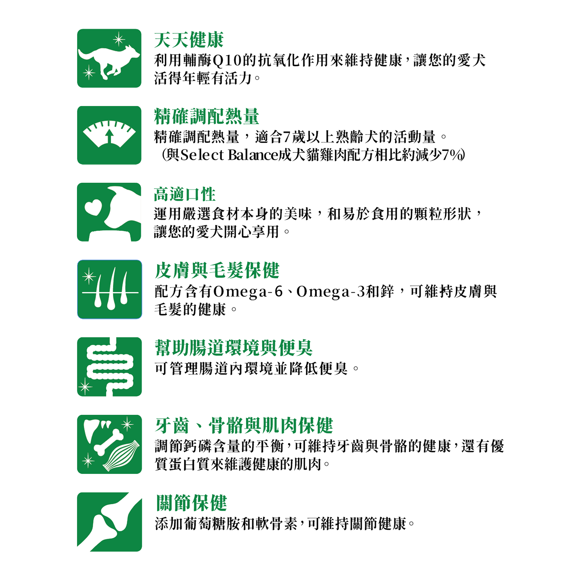 SELECT BALANCE 室內熟齡犬/體重維護配方.雞肉口味