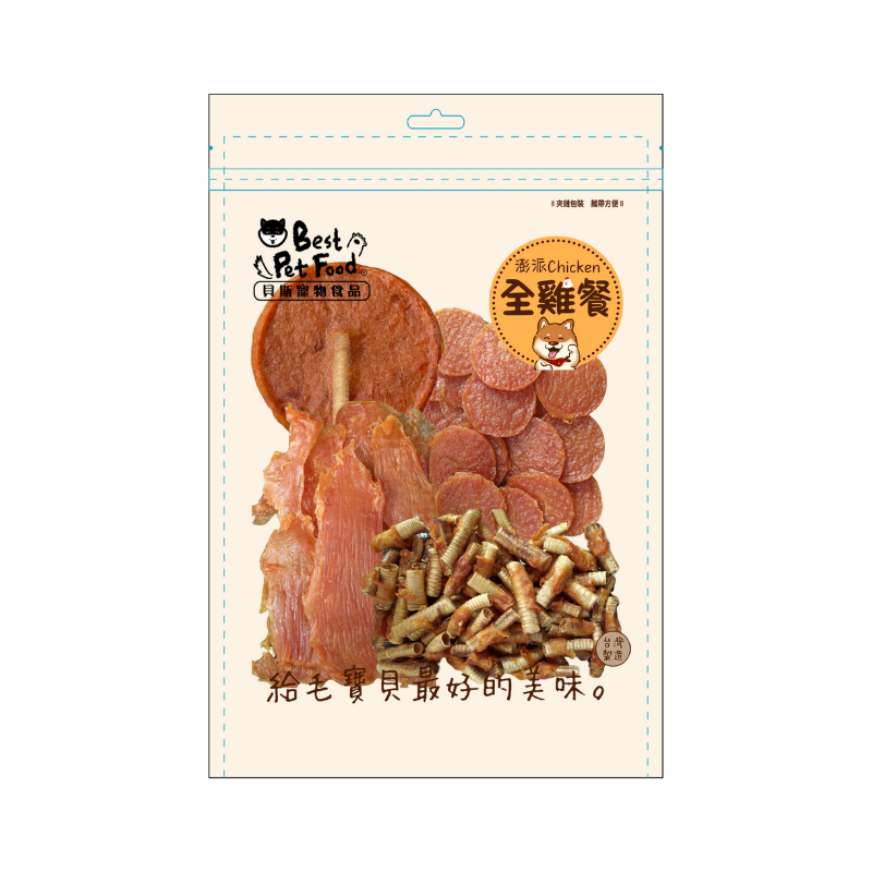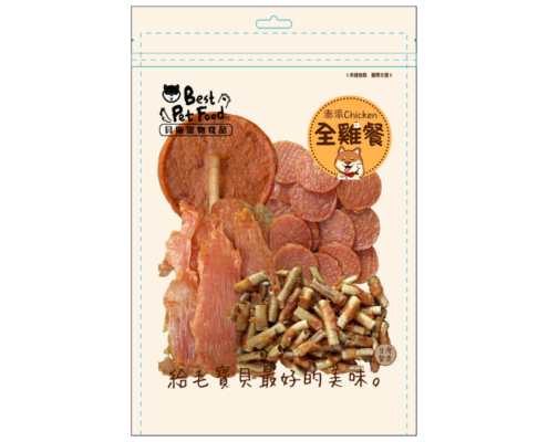 機柳條(雞肉、植物性甘油、維生素E)、雞肉造型Q餅(雞肉、植物性甘油、維生素E)、雞肉脆脆一口酥(雞肉、鴨氣管、植物性甘油、維生素E)、巨巨脆笛棒棒糖-雞肉(雞肉、鴨氣管、植物性甘油、維生素E)