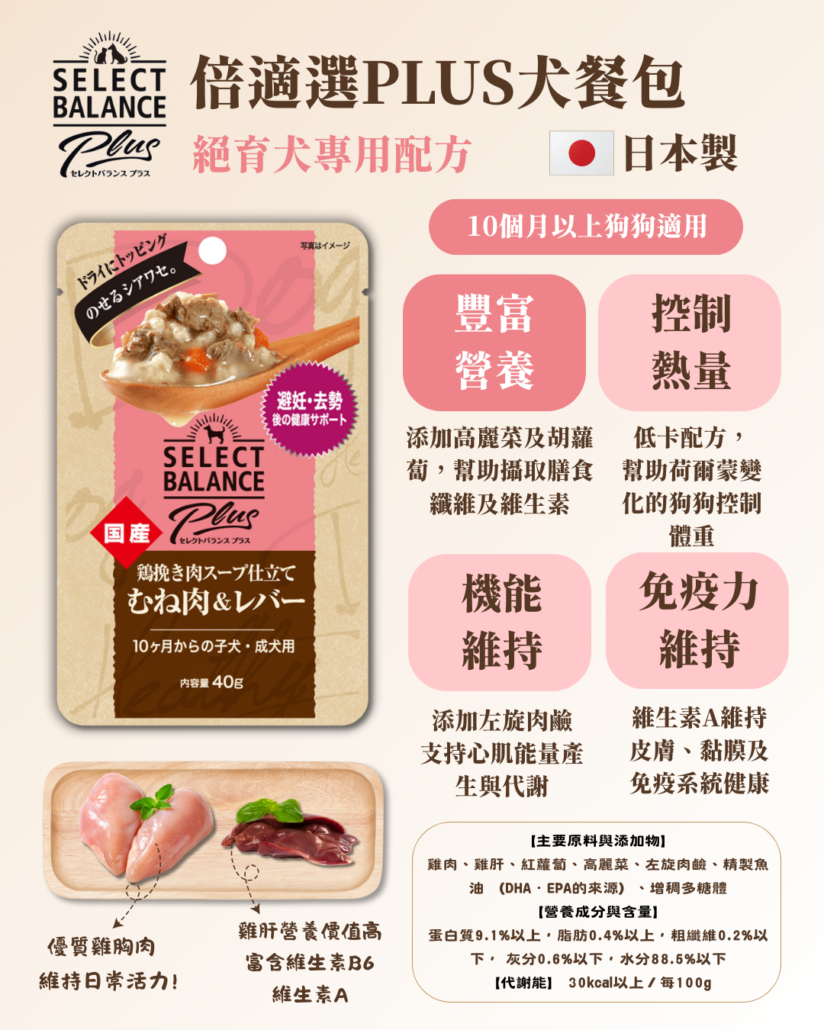 SELECT BALANCE PLUS犬餐包.絕育犬專用配方40g