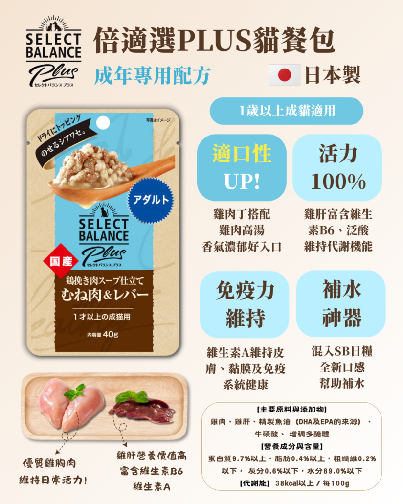 SELECT BALANCE  PLUS貓餐包.成年專用配方40g